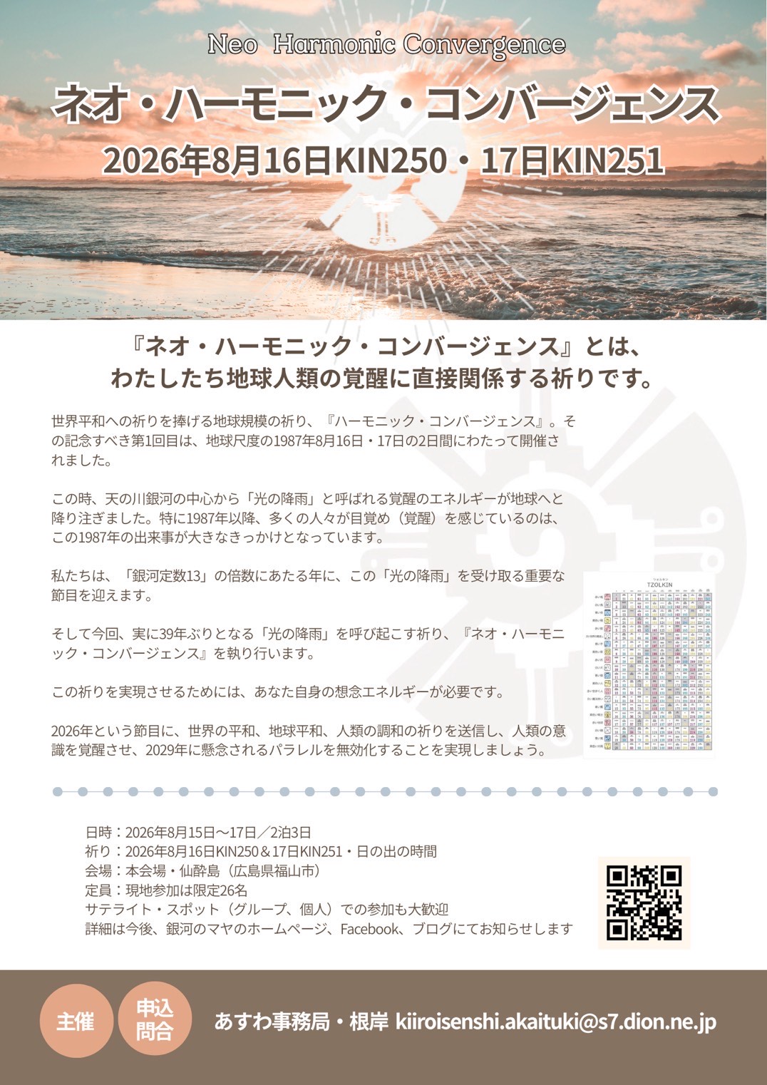 260日カレンダー銀河のマヤ ツォルキンのみを用いたセッションです。その他のツールは一切使いません。占いのように「○○した方がいい/しない方がいい」など断定的な内容ではありません。